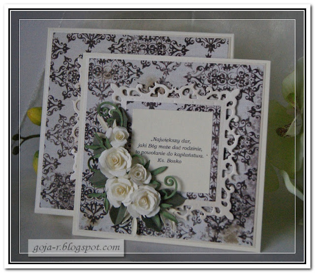 Trochę się pospieszyłam że to ostatnie kartki w tym temacie, kolejna kartka na konfirmacje, tym razem w kartoniku, zdobiona w środku, z kieszonką na pieniądze.