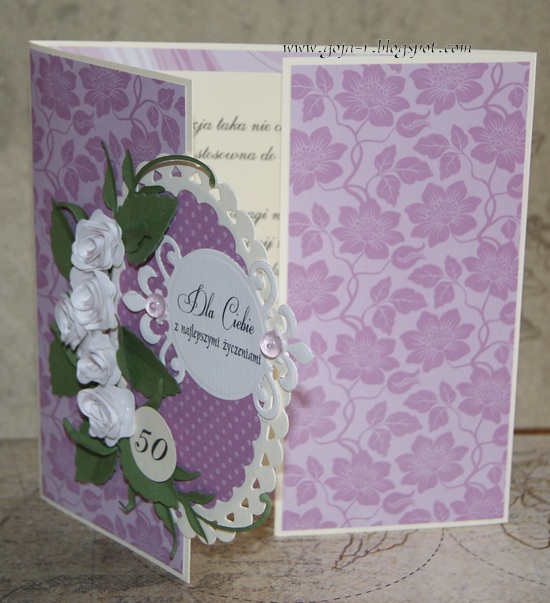 | No cóż, nie mogłam się oprzeć! Już pisałam, że uwielbiam kwiaty od Asi a tu w lift kartki Joanny Powiem szczerze, że do końca nie jestem zadowolona z tej kartki czegoś mi tu brakuje albo czegoś za dużo w domyśle róż, ale zmieniać już nie będę bo była to dość czasochłonna zabawa. Zgłąszam ją również na wyzwanie w wyzwanie-birthday-urodziny |
