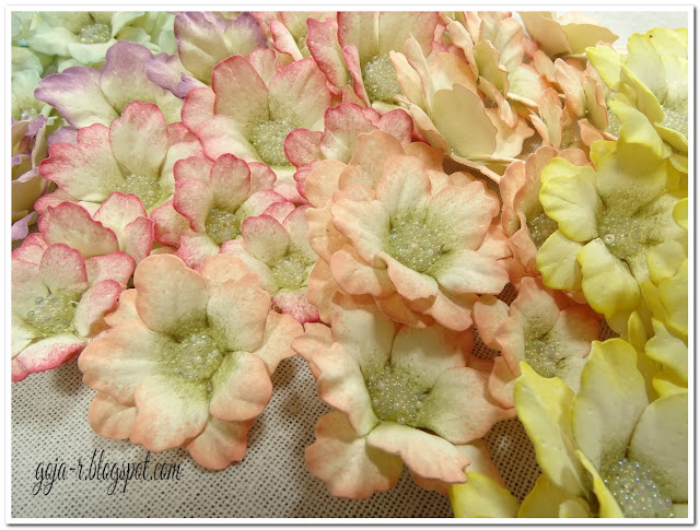 Kwiaty zrobione z papieru o gramaturze 250 kolorowane tuszami